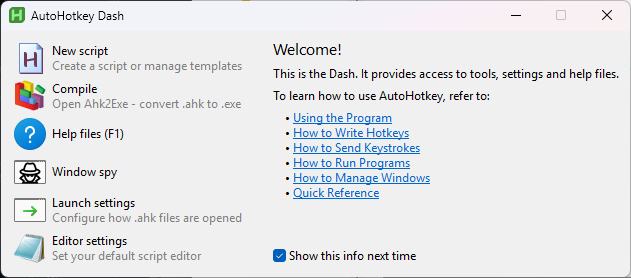 今後はこの AutoHotkey Dash が GUI メニューになりますが,コンパイル時以外起動することはないでしょう.