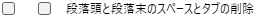 - 【段落頭と段落末のスペースとタブの削除】の項目のチェックを両方とも外す