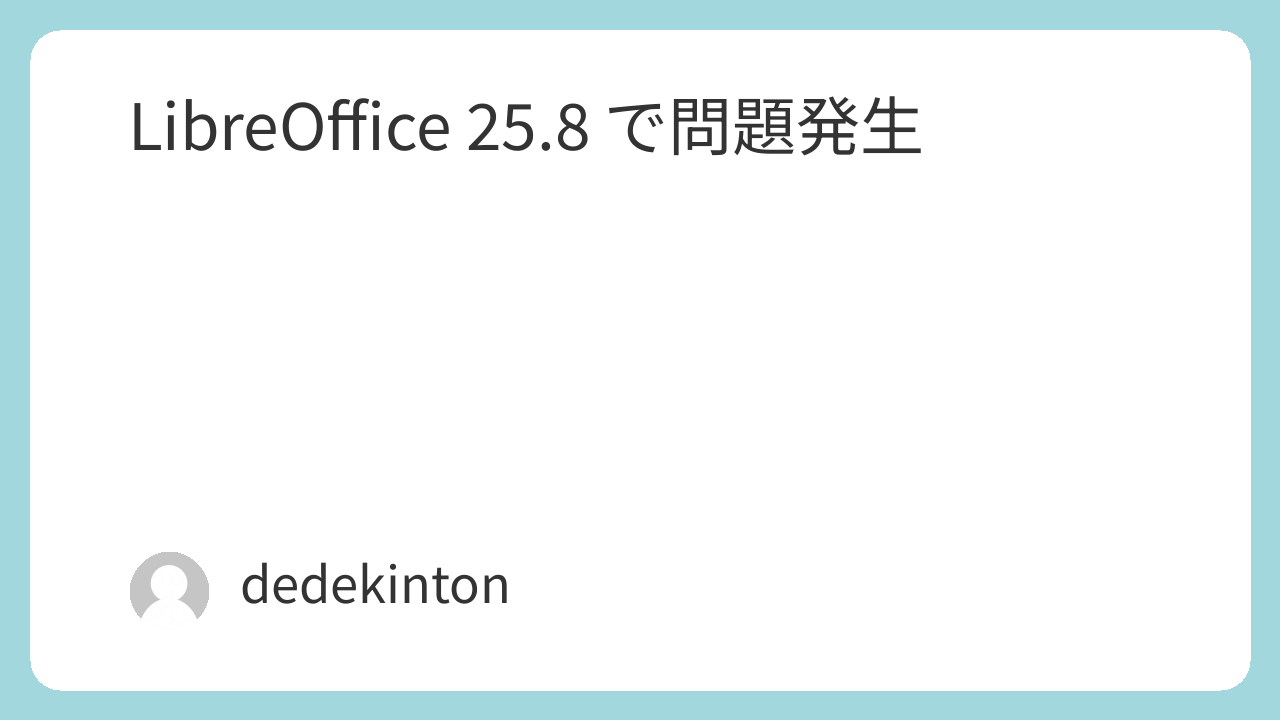 LibreOffice がバージョンアップするたびに,私にとっては問題だらけで嫌になるのですが,今回の 25.8 へのバージョンアップでもやらかしてくれました.