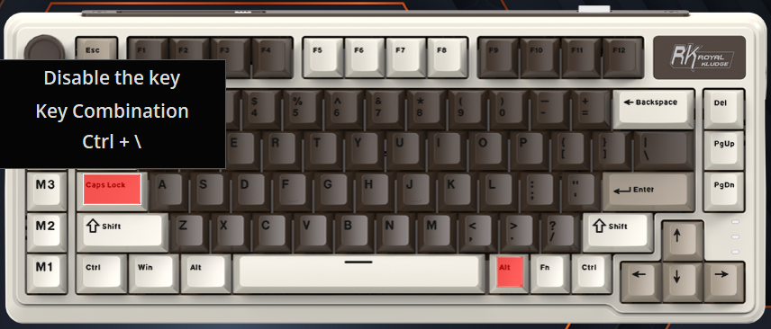 これを使い越してこそ,このキーボードの良さが活かされるのでしょうが,左側に置かれていることで,使いにくいのは確かです.これを好まないのであれば,RK M75 が選択肢になるでしょう.