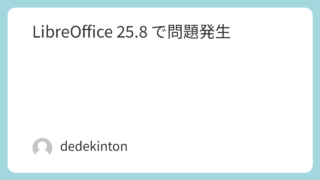 コンピュータ LibreOffice 25.8 で問題発生 LibreOffice がバージョンアップするたびに,私にとっては問題だらけで嫌になるのですが,今回の 25.8 へのバージョンアップでもやらかしてくれました.※ 今回は Writer のみになります.他にも問題が有ればここにまとめていきま... 2025.12.30 コンピュータ